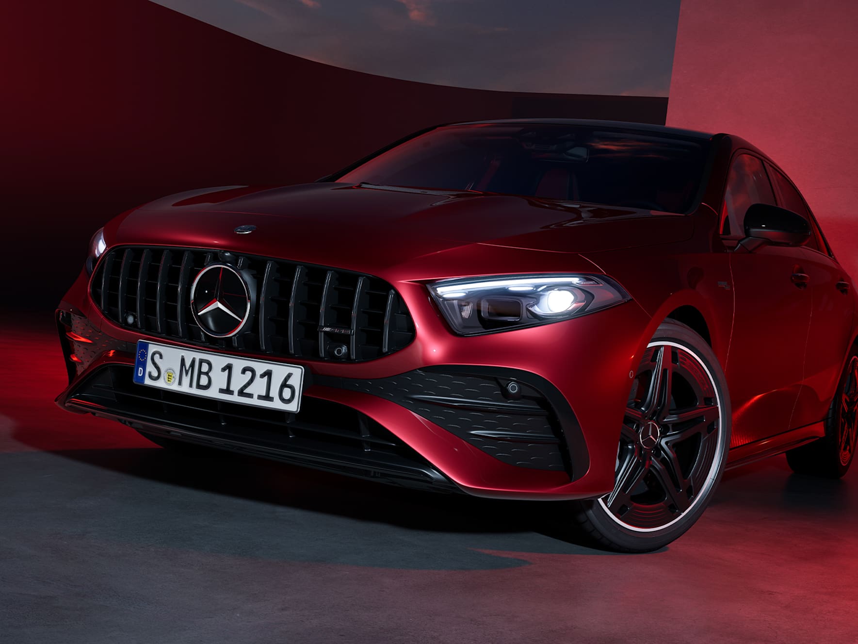 AMG Mercedes-AMG A 35 4MATIC Новий Mercedes-AMG A 35 4MATIC як класичний спортивний седан повертає нас до витоків та історичного ядра бренду Mercedes-AMG. Завдяки компактним габаритам, динамічним пропорціям і коротким звісам, ця модель пропонує комфортний простір для пасажирів і багажу. Виразна передня частина вирізняється специфічною для AMG радіаторною решіткою з вертикальними стійками і демонструє чітку схильність до динамічного руху, характерного для бренду.