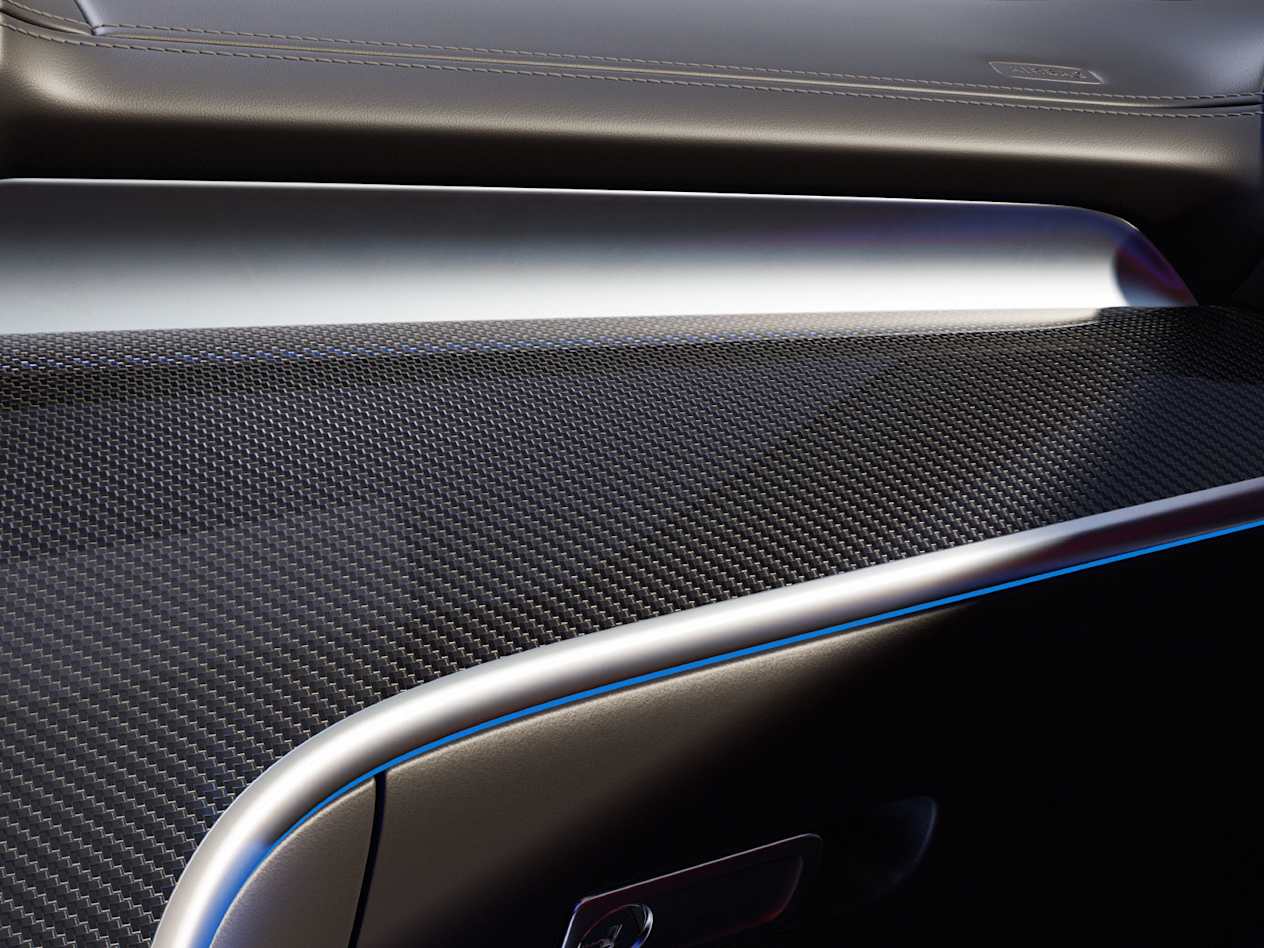 Елементи оздоблення AMG з вуглеволокна Стильний вигляд завдяки використанню вуглеволокна:[1] елементи оздоблення AMG з вуглеволокна ще більше прикрашають кокпіт та інтер’єр, додаючи їм спортивної винятковості. Крім того, вони створюють захопливі контрасти та повністю підкреслюють ексклюзивний стиль AMG.