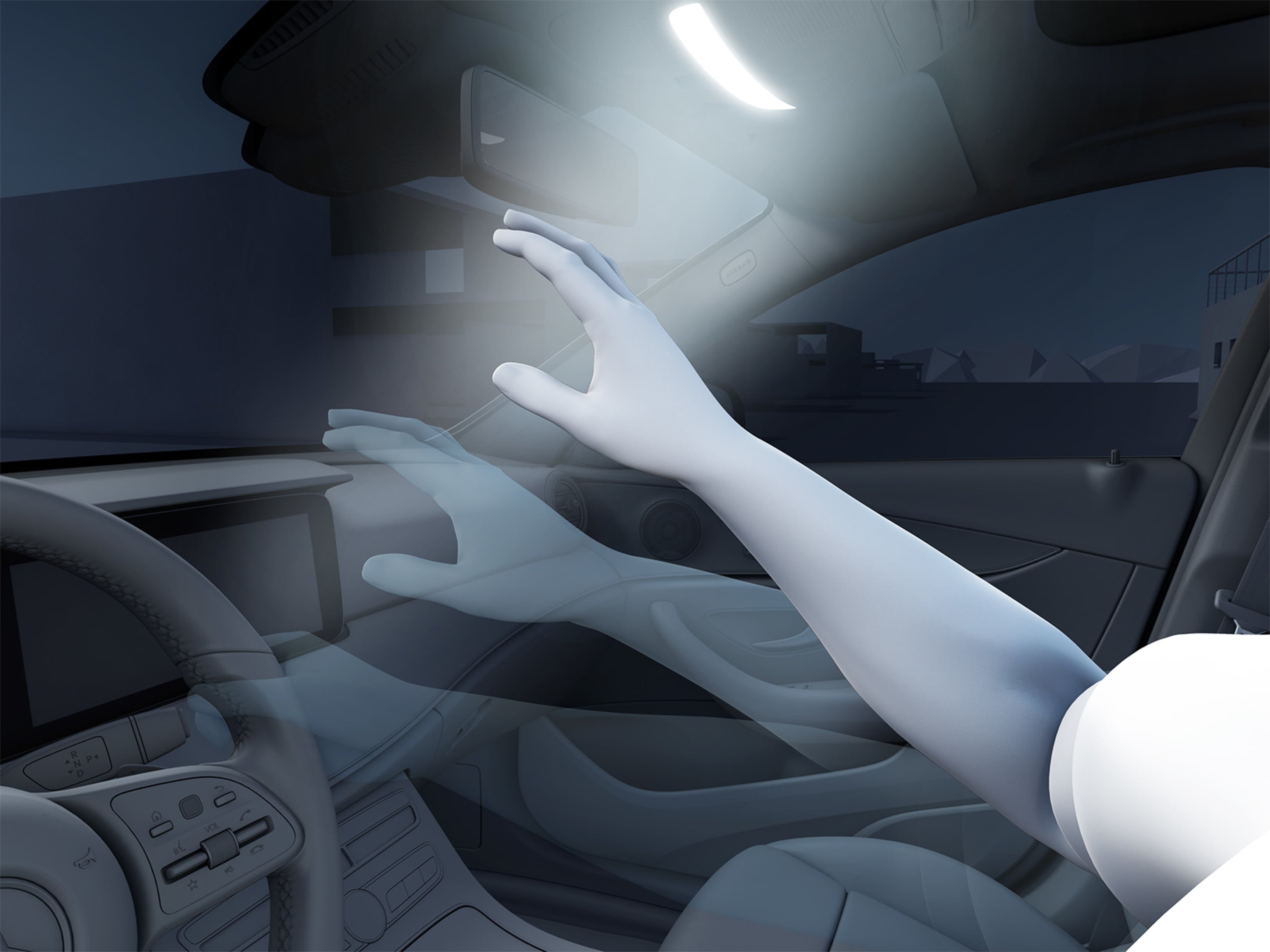 Асистент MBUX в інтер'єрі Асистент MBUX в інтер'єрі підтримує керування, реагуючи на мову тіла. Якщо руки наближаються до дверей, він інтерпретує це як бажання вийти з автомобіля і попереджає, якщо виявлено ризик зіткнення. Напрямок руху вашої голови визначає, яке зовнішнє дзеркало ви хочете відрегулювати. Ви також можете керувати функціями освітлення за допомогою звичайних рухів рук.