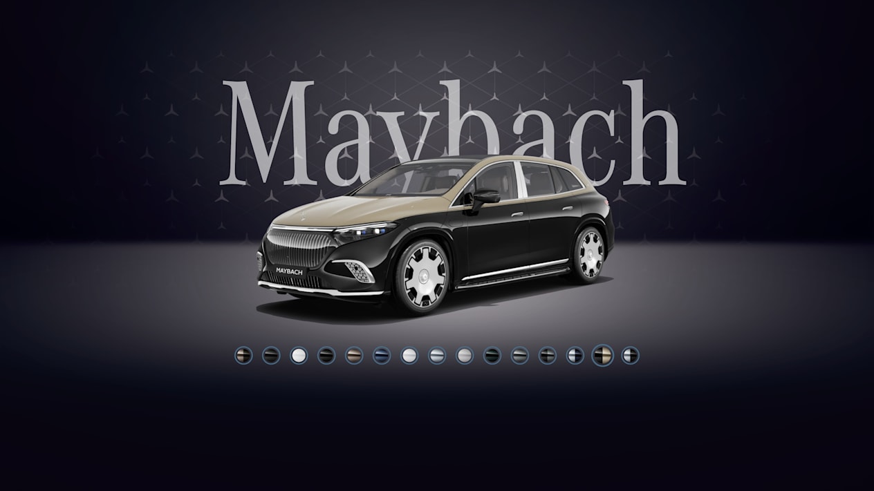 Екстер'єр Екстер'єр Mercedes-Maybach EQS SUV. Екстер'єр Mercedes-Maybach EQS SUV демонструє прогресивний дизайн з вишуканими елементами Maybach, які надають йому неповторності. Аеродинамічно оптимізована форма EQS SUV вирізняється такими деталями, як радіаторна решітка Maybach, елегантна задня частина зі світлодіодними задніми ліхтарями у формі 3D-спіралі і набір ексклюзивних двоколірних покриттів. Електромобіль з безпрецедентною елегантністю та особливою магією, що притаманна Mercedes-Maybach.