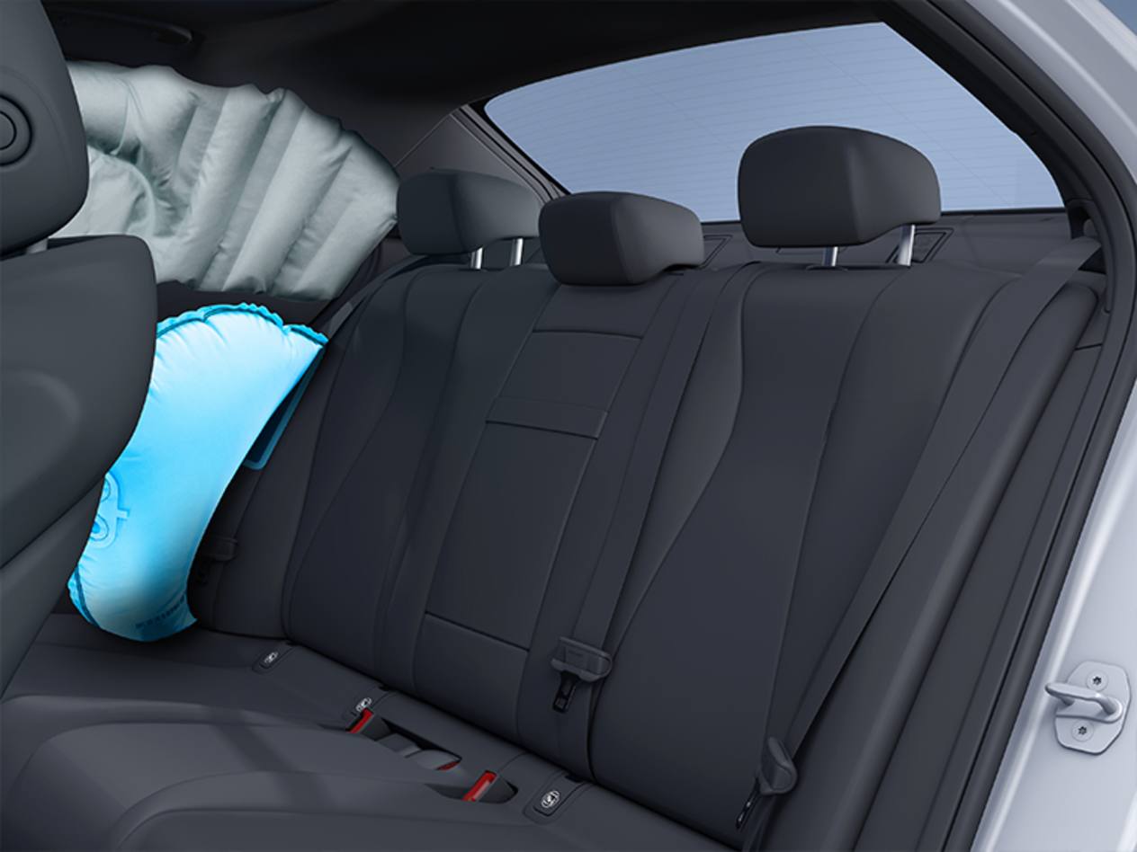 Задні подушки безпеки Інноваційні повітряні подушки роблять задню частину салону ще безпечнішою. Задні подушки безпеки інтегровані в спинки передніх сидінь і спрацьовують у разі сильного лобового зіткнення. Вони м'яко розгортаються і захищають пристебнутих ременями пасажирів на задніх зовнішніх сидіннях від контакту з передніми сидіннями. Таким чином значно зменшується навантаження на голову та шию.
