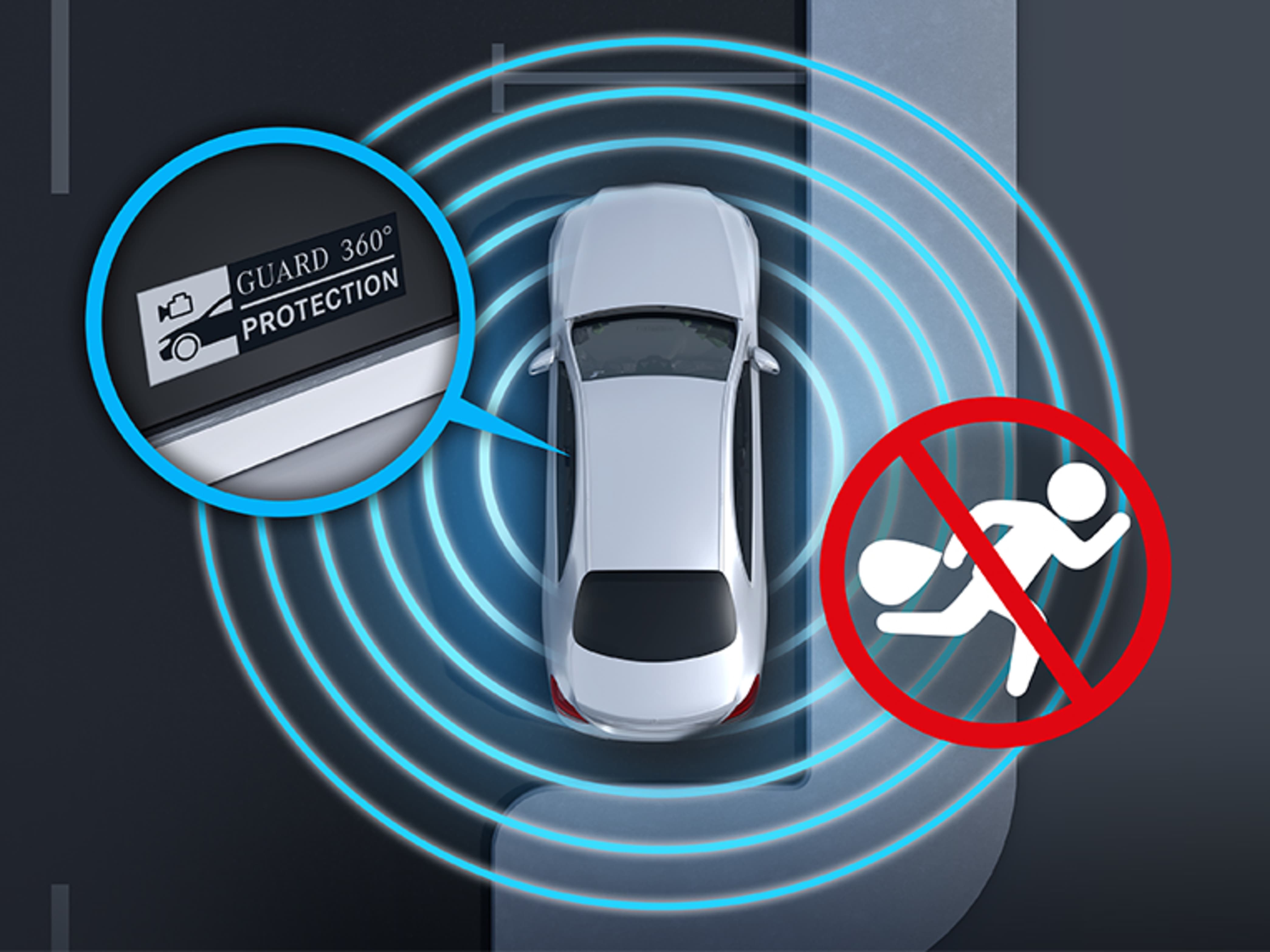 Охоронна система GUARD 360° Plus* (у перспективі для України) Охоронна система GUARD 360° Plus[1] забезпечує повний контроль навколо транспортного засобу. Завдяки протиугінній сигналізації, а також аварійній деактивації ключа, ви зможете швидко реагувати. В дорозі функція Collision Detection* сповіщає вас через додаток. А якщо ваш автомобіль все ж таки украдуть, служба допомоги у разі викрадення Stolen Vehicle Help* (Допомога після угону) допоможе вам з більшою ймовірністю повернути своє майно.[8]
