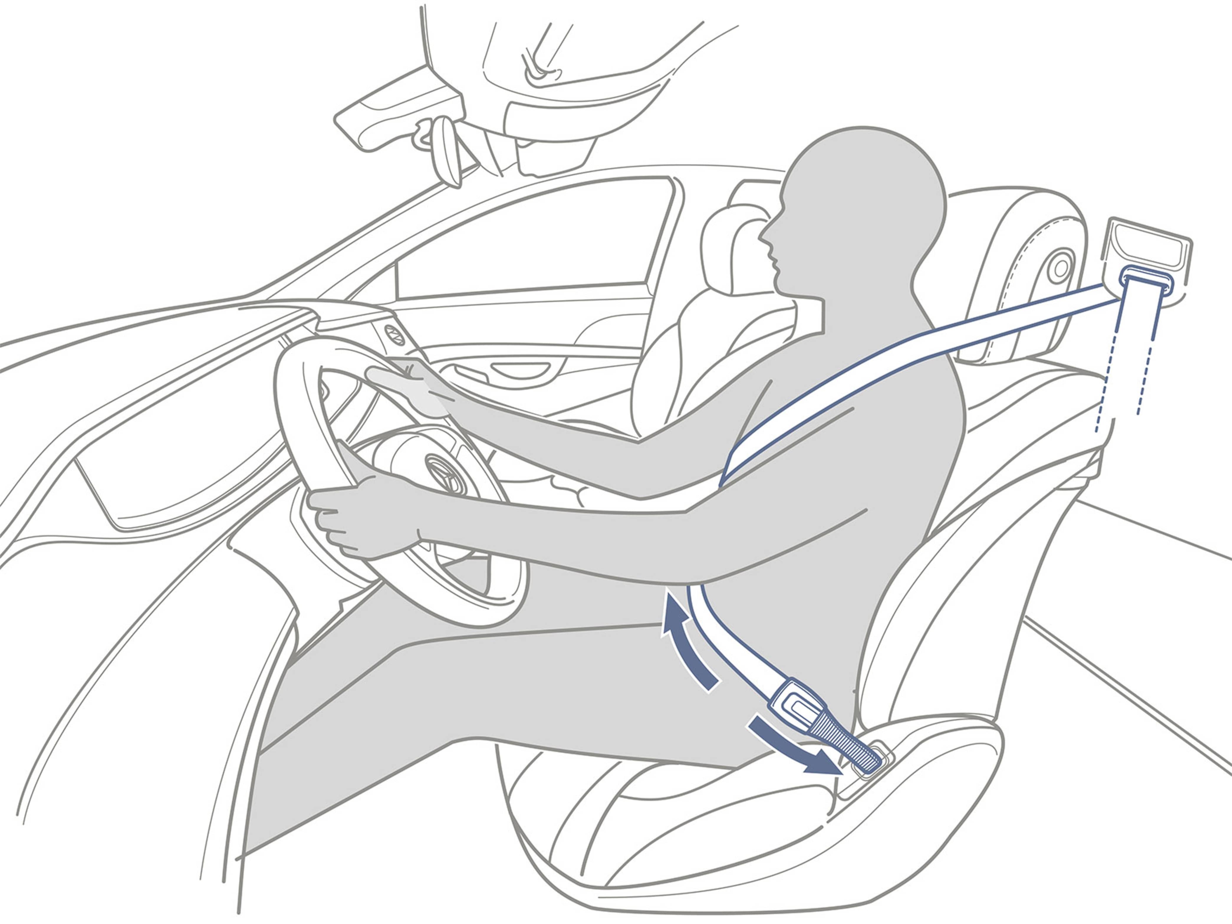 Система безпеки PRE-SAFE® Impulse У разі сильного фронтального зіткнення система PRE-SAFE® Impulse[1] здатна послабити ударну силу, що припадає на водія та переднього пасажира. Вона додатково затягує передні ремені, а також плечову зону біля пряжки та на кінці ременя. Це утримує пасажирів у кріслі на початковому етапі. Також завдяки системі регулювання рівня комфорту ремінь м'яко прилягає під час повсякденного використання.