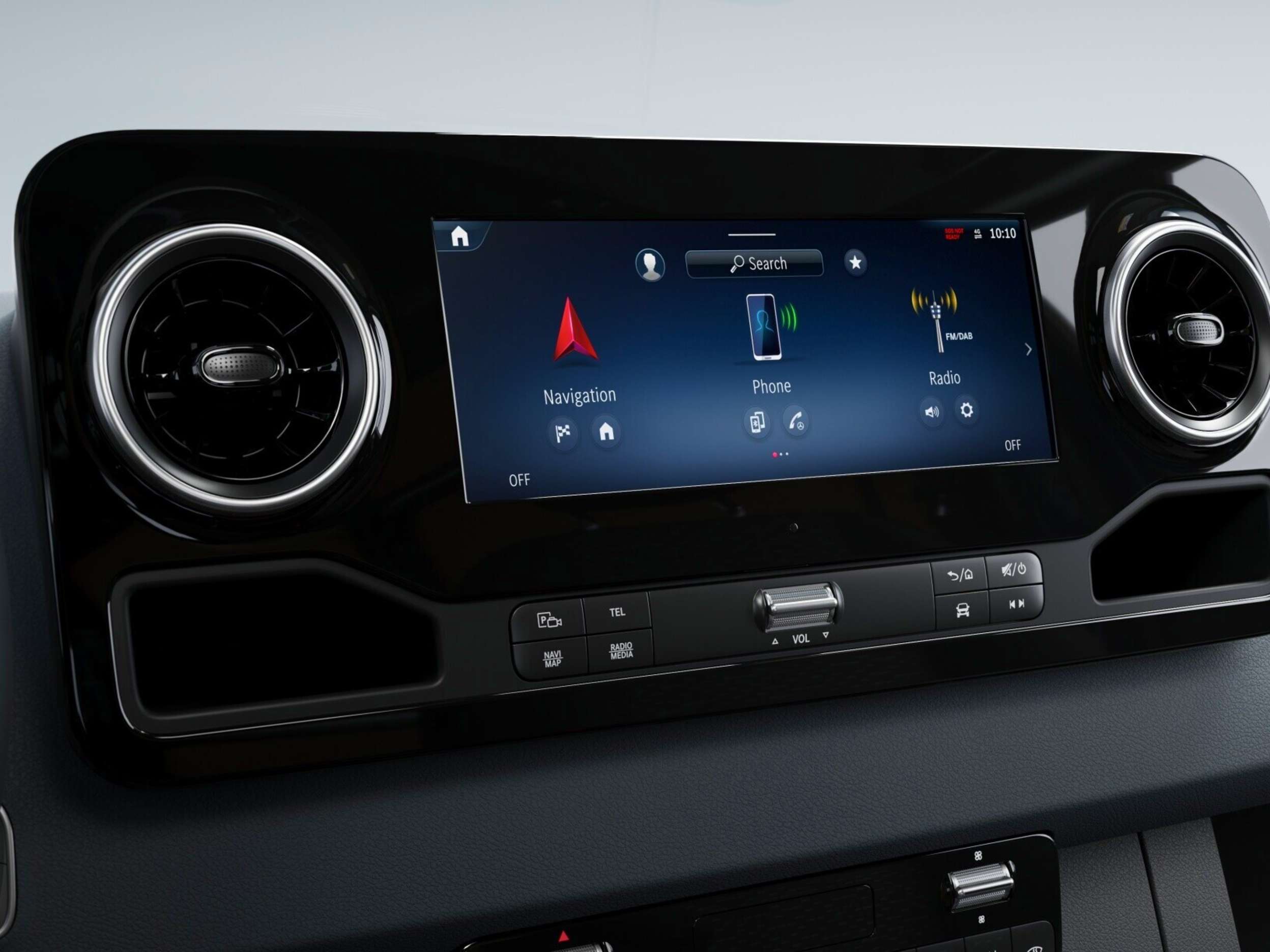 Підготовка для встановлення системи дистанційного обслуговування та навігації (у перспективі для України) Навігація для причепів і великогабаритних автомобілів: при розрахунку оптимального маршруту враховуються габарити автомобіля або комбінації автомобіля та причепа Mercedes-Benz eSprinter.